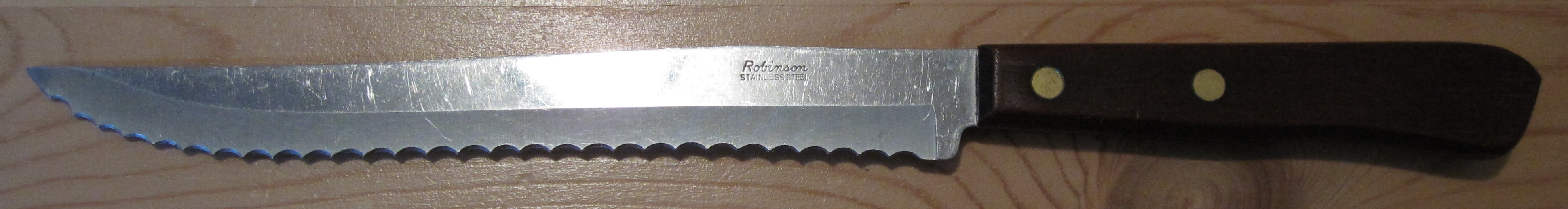 The manufacture of the bread knife was named Robinson, and was being sold to many households in the area, door-to-door, at the time.